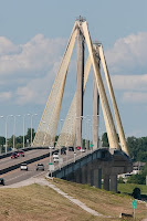 Spain's Julian Sanz described the Missouri countryside as "calor," or hot. He resorted to spraying down his head an neck with a bottle of water but said he was otherwise feeling fine. We spotted the team RV of Dr. Michael Nehls at the bridge over the Mississippi, but didn't catch a glimpse of his junta of supports or the good doctor himself. I suspect he is resting, having made a major milestone in the race. His strategy of resting 6 hours each 24 is working well for him.